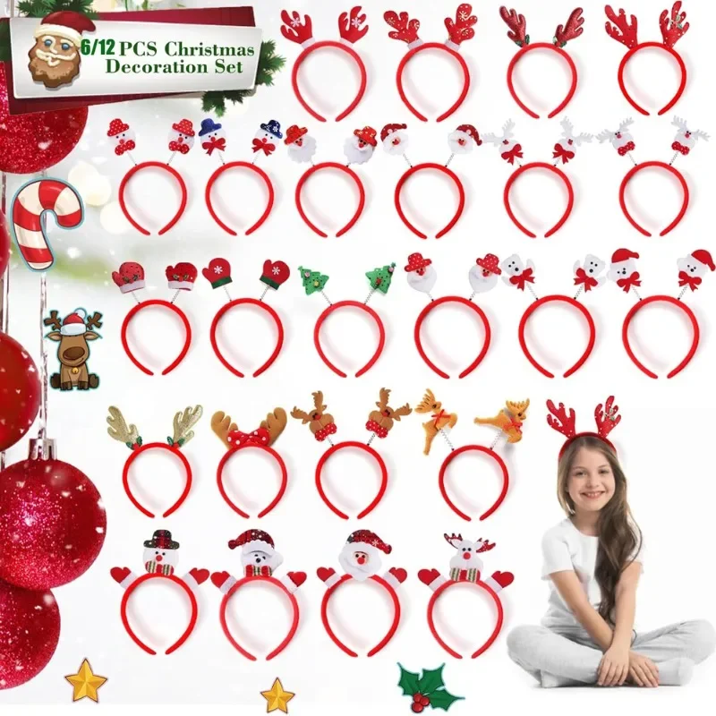 6/12PCS Random Christmas Headbands Party Favors Xmas Party Headband Favors Christmas Hat Hairpin for Holiday Classroom Supplies